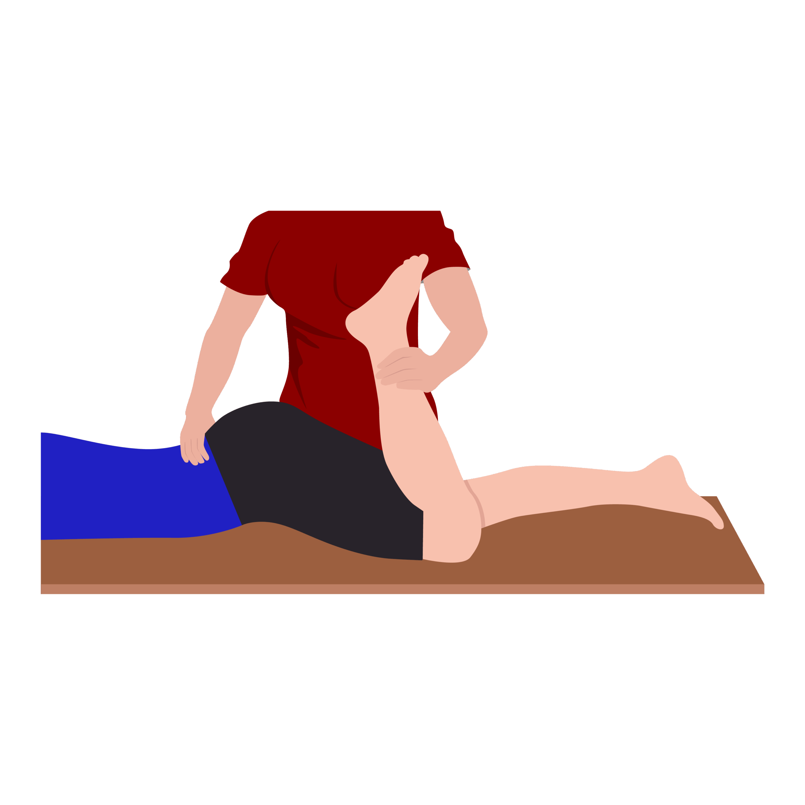 The examiner passively flexes the knee on the tested side, bringing the heel toward the buttock while stabilizing the pelvis.