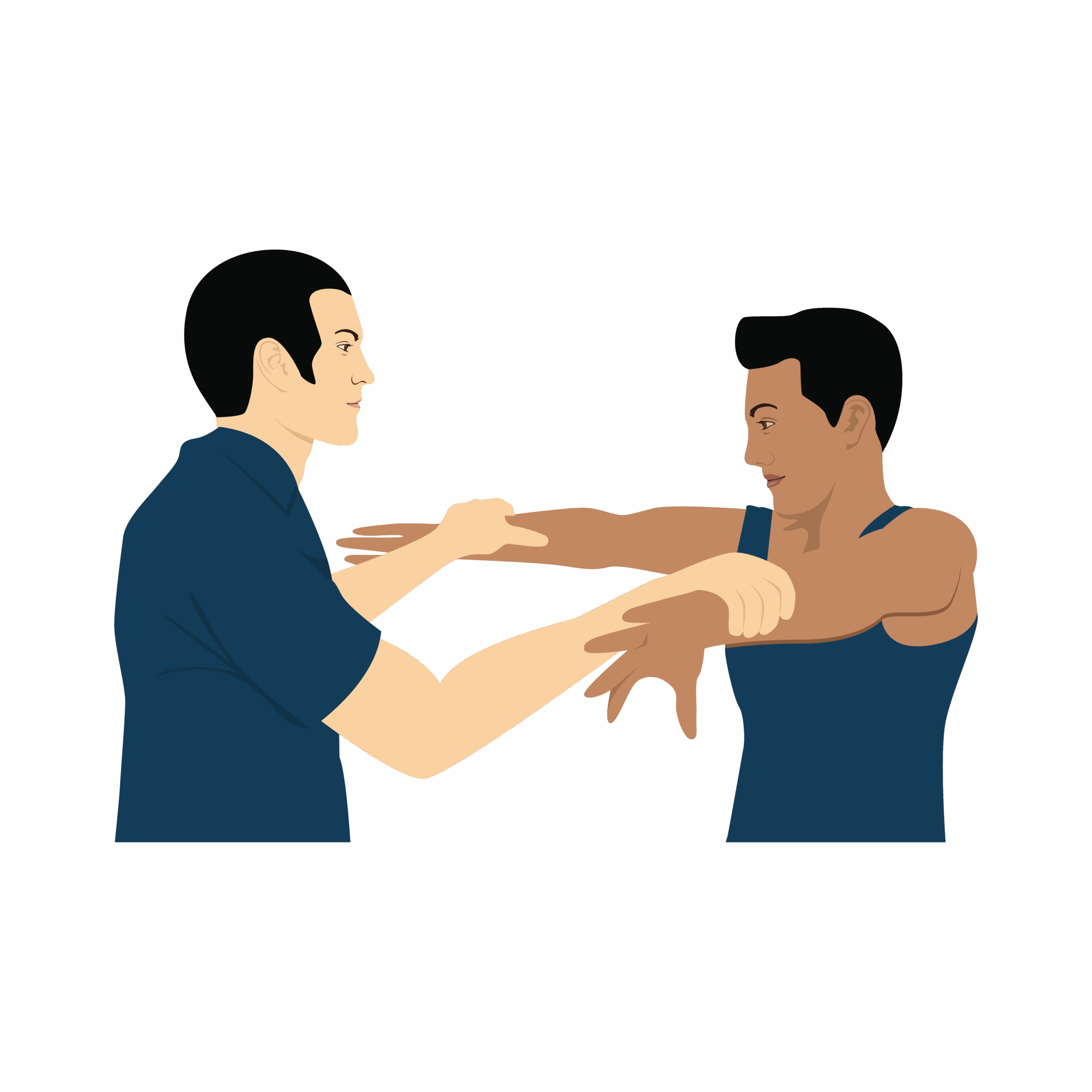 The therapist applies downward pressure just above the wrists or elbows and asks the client to resist.