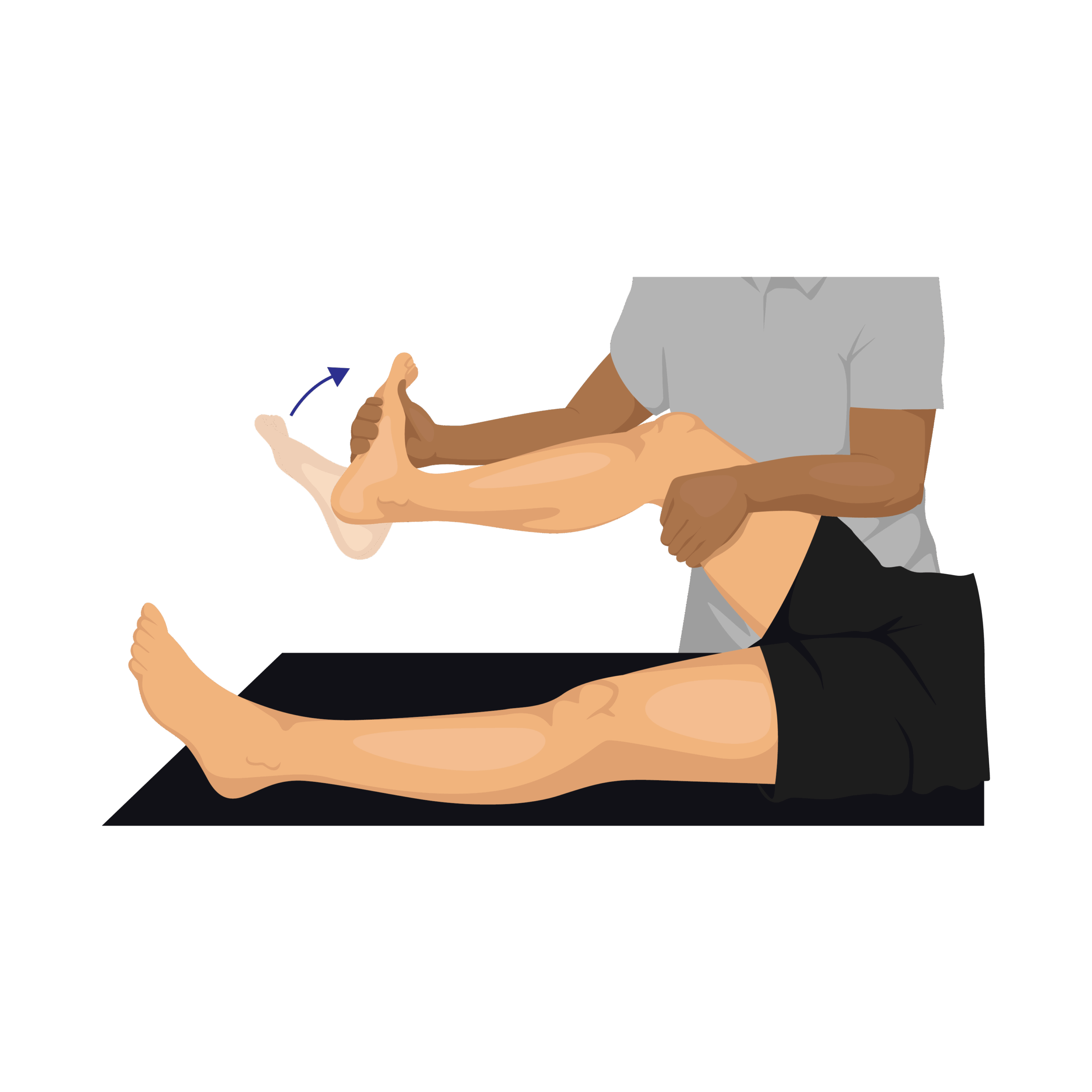 The examiner forcibly dorsiflexes the client’s foot at the ankle (bends it upward toward the shin) while sometimes also gently squeezing the calf.