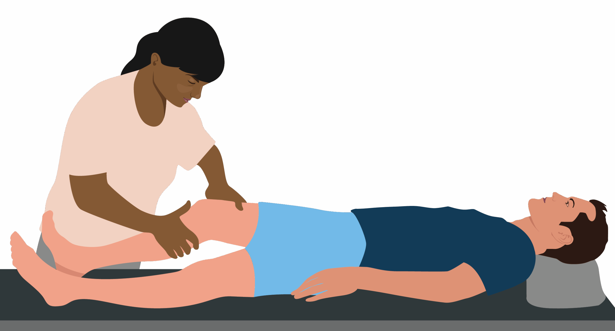 The client lies supine on the table with the knee flexed to about 20-30 degrees.