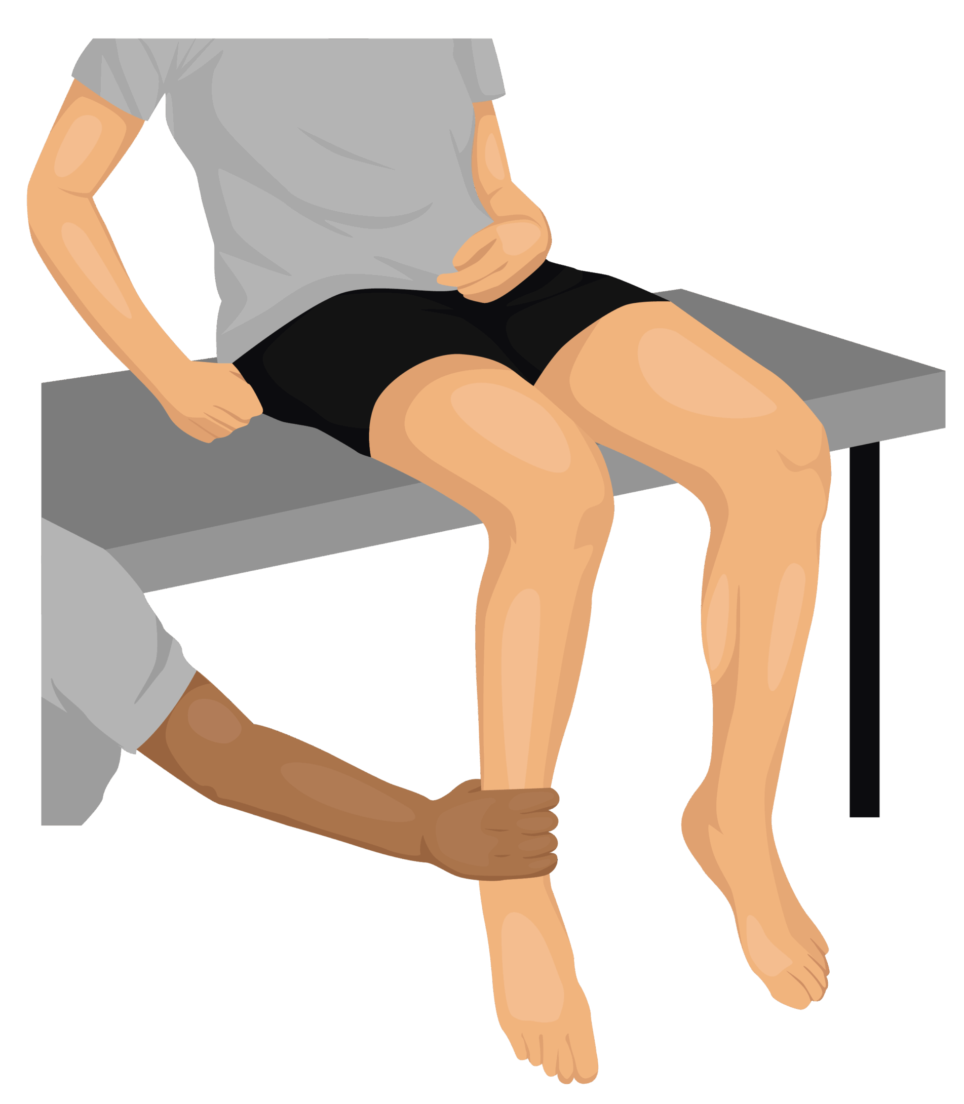 Client position: Seated with knees over the edge of the chair or table, hips and knees flexed.
