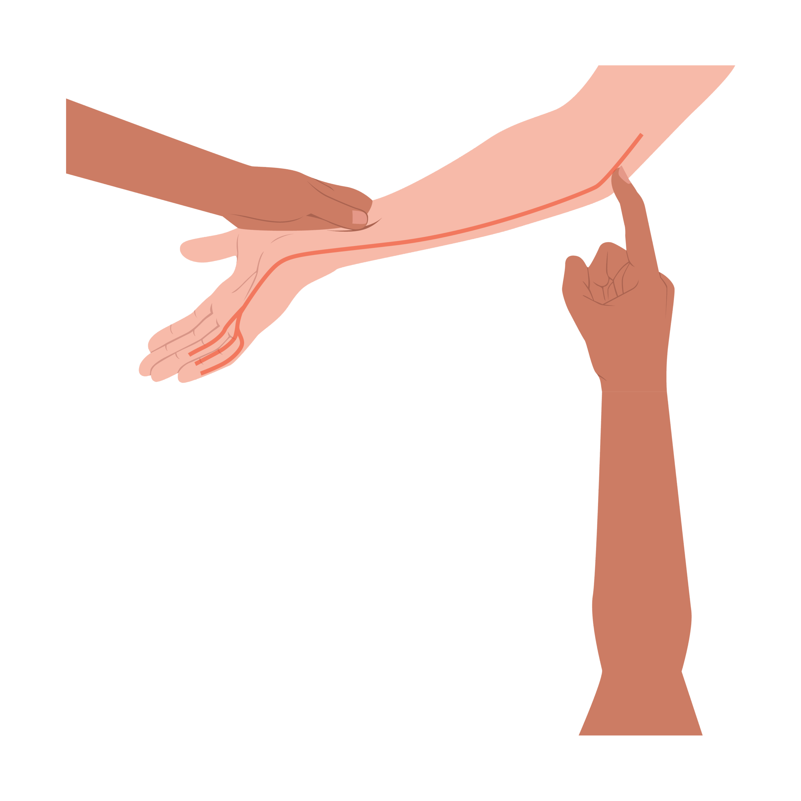 Client position: Seated, elbow flexed and relaxed or extended at the table.
